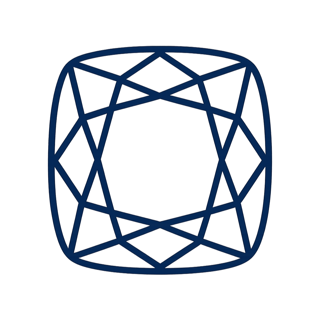 Cushionslipningen – eller kuddslipningen – är en tidlös ikon med anor från 1700-talet. Den kombinerar den gamla “old mine cut”-traditionen med modern briljans. Dess mjukt rundade hörn och kvadratiska kontur ger ett romantiskt uttryck som påminner om antika smycken men med modern gnista.